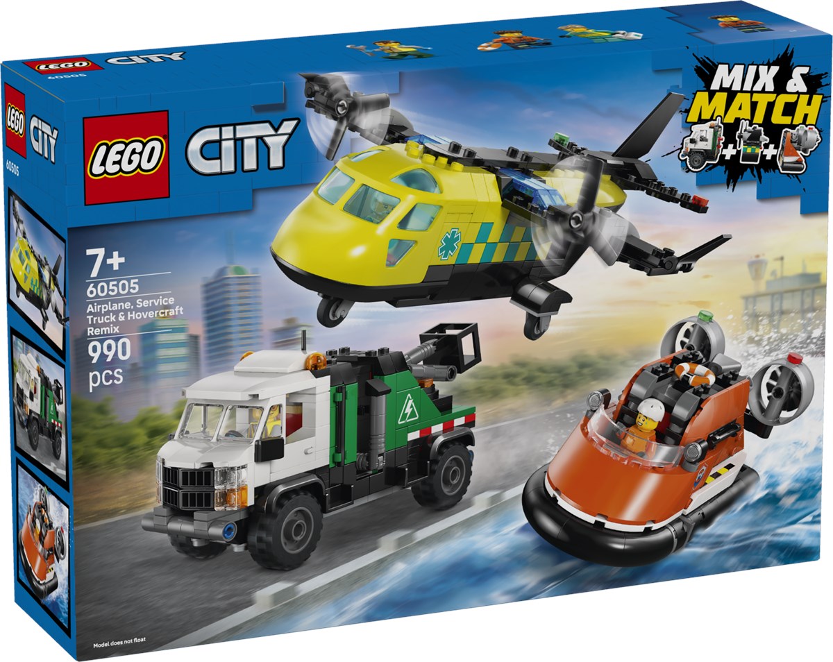 Ten zestaw trzech modeli pojazdów ratowniczych zawiera samolot medyczny, poduszkowiec straży przybrzeżnejoraz samochód serwisowy z wysięgnikiem. Każdy model składa się z trzech modułowych części, które można łączyć, co pozwala chłopcom i dziewczynkom mieszać i łączyć pojazdy, które sprostają każdej misji. Wystarczy tylko dodać minifigurki kierowcy, ratownika straży przybrzeżnej i medyka, i można zaczynać! Ten zestaw z pojazdami ratowniczo-poszukiwawczymi to wspaniała niespodzianka lub prezent urodzinowy dla dzieci, które uwielbiają interaktywne zabawki i kreatywną zabawę. Ten zestaw można łączyć zinnymi z serii LEGO City (sprzedawanymi osobno) i przeżywać jeszcze więcej przygód.