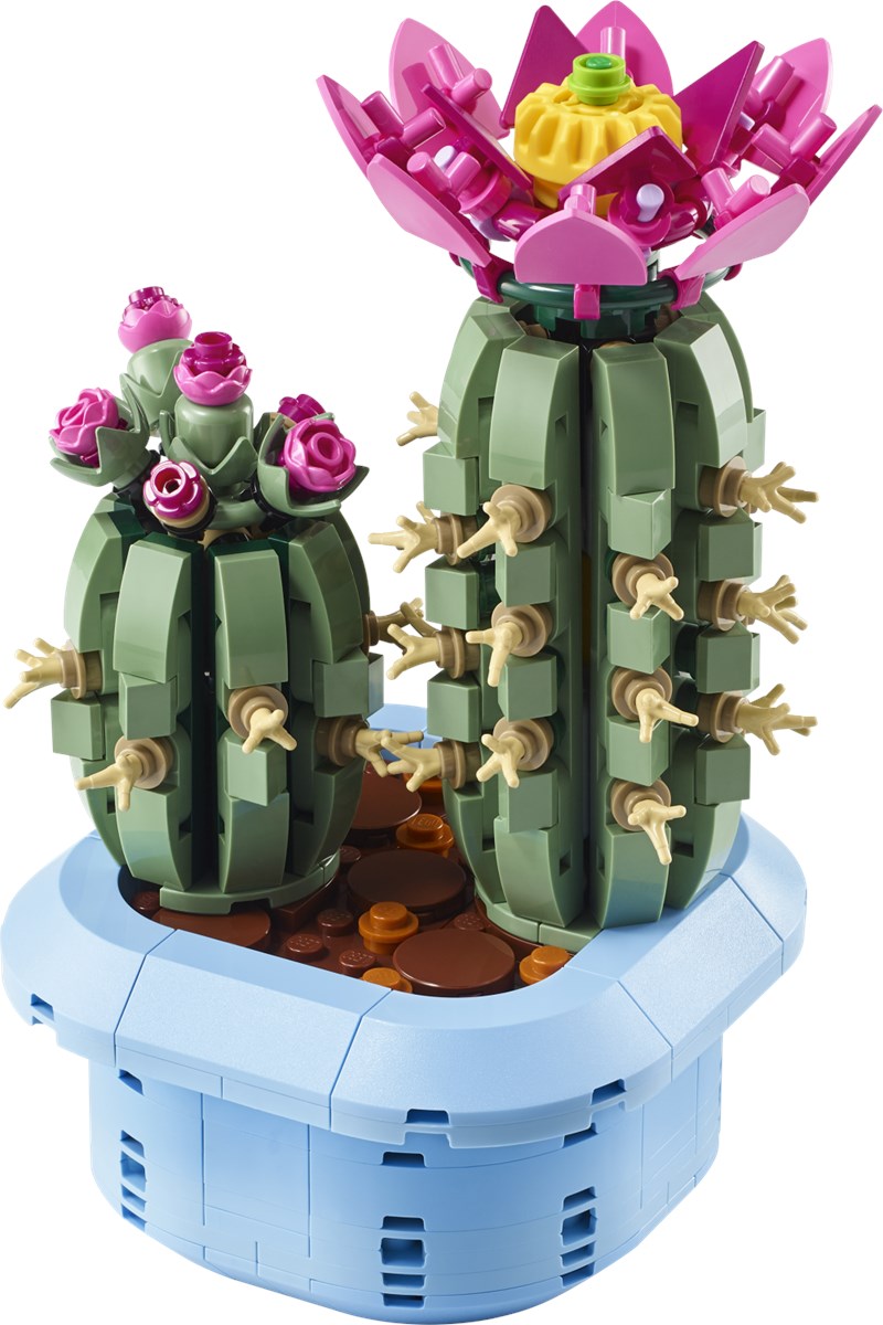 Pełen detali model zapewni dziewczynkom i chłopcom świetną zabawę podczas budowania. Dzieci poczują, jak rozkwita ich kreatywność, gdy zbudują dwa modele kaktusów. Większy kaktus LEGO jest w pełnym rozkwicie i ma różowy kwiat z żółtym środkiem na szczycie, podczas gdy mniejszy kaktus LEGO ma różowe pąki w różnych fazach wzrostu. Kaktusy mają autentyczny odcień zieleni i są umieszczone w pastelowoniebieskiej doniczce, dzięki czemu po zbudowaniu dzieci mogą je wyeksponować jako dekorację sypialni lub domu.