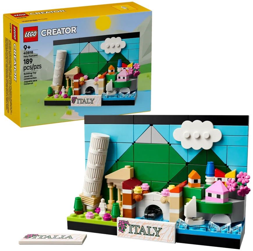 Odwzoruj niektóre z najbardziej kultowych włoskich atrakcji turystycznych dzięki zestawowi LEGO® z pocztówką do zbudowania. Ten wyjątkowy prezent dla podróżników przedstawia Krzywą Wieżę w Pizie, rzymskie ruiny, most Rialto w Wenecji oraz malownicze miasto Positano na wybrzeżu Amalfi. Dzieci w wieku od 9 lat mogą wybrać jedną z dwóch płytek z naklejkami z napisem „Italy” lub „Italia” i umieścić ją z przodu pocztówki. Ta kolekcjonerska pocztówka z pewnością spodoba się miłośnikom Włoch lub osobom, które marzą o podróży do tego kraju.
