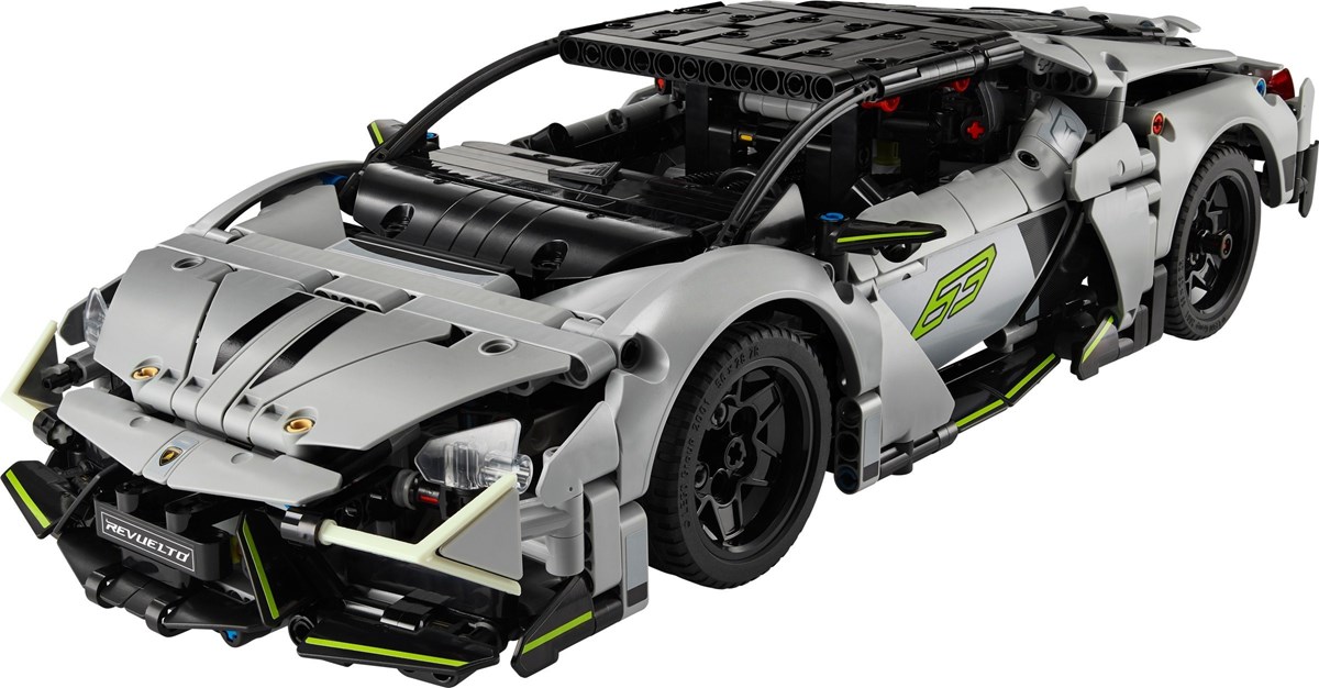 Zainspiruj chłopców i dziewczynki w wieku od 10 lat do zbudowania szczegółowej wersji modelu Supersamochodu Lamborghini Revuelto LEGO® Technic (42214). Funkcje wzorowane na oryginale obejmują pokrywę silnika i fajne reflektory z elementami świecącymi w ciemności. Elegancki design z pewnością zrobi wrażenie na wszystkich miłośnikach Lamborghini. Ale budowa to dopiero początek emocji. Pobierz aplikację CONTROL+, aby sterować samochodem i światłami, obserwować dane na żywo z ekranu aplikacji oraz doskonalić umiejętności jazdy.