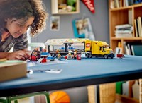 Oto najlepsza ciężarówka dla fanów LEGO®! Zaskocz ośmioletnich i starszych konstruktorów zestawem LEGO® City Żółta ciężarówka dostawcza (60440). Zawiera on ciężarówkę LEGO z dużą przyczepą, palety z zestawami zabawek, działający wózek widłowy i stoisko z hot dogami. Wystarczy dodać cztery minifigurki, aby zapewnić wiele godzin twórczej zabawy i wymyślania historii.